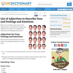 Feelings , emotions and moods: English vocabulary exercises elementary and intermediate level esl. But so vast is the English language that words for feelings and emotions , and to describe the human condition, have actually found their way into the dictionary. That sai Spanish frequently uses adjectives to express emotions much. You see, the main thing about adjectives ( emotional ones included) is that they.
